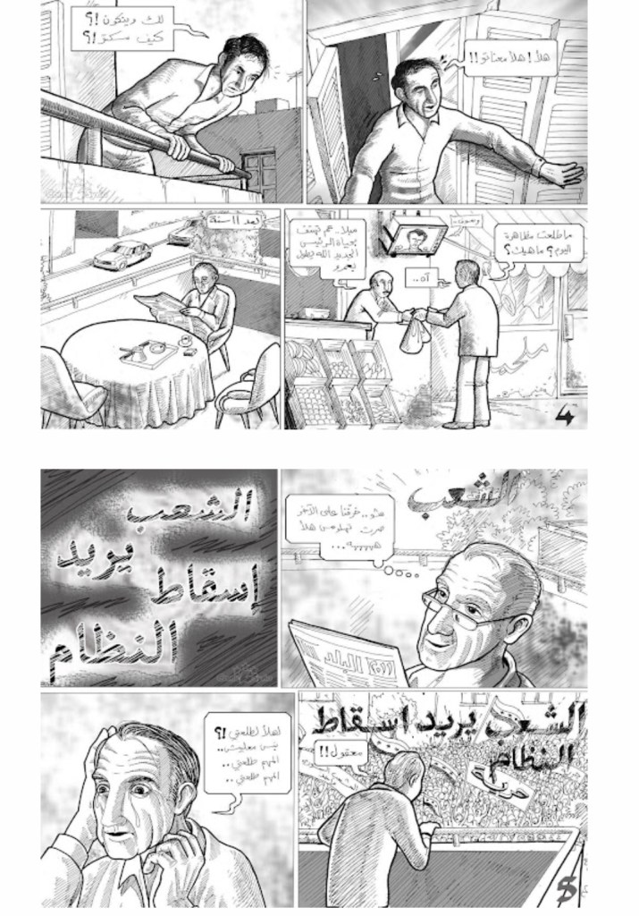 All’annuncio della morte di Hafez al-Assad, apre le finestre del suo appartamento esclamando alle masse assenti: “Ora! Ora è il momento! Dove sei? Perché sei silenzioso?” Ma ancora una volta gli viene detto che si stanno svolgendo solo manifestazioni di sostegno al nuovo presidente Bashar. Undici anni dopo, mentre si siede sul suo balcone, sente canti da lontano e pensa di avere le allucinazioni. I fumetti si concludono con le parole: “È successo solo ora? Va bene, va bene, l’importante è che sia successo».