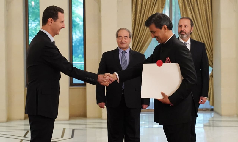 Il nuovo ambasciatore dell’India in Siria, Mahender Singh Kanyal, ha cominciato le sue funzioni ufficiali dopo che il presidente del regime siriano, Bashar al-Assad, ha accettato le sue credenziali nell’Assemblea popolare siriana il 26 agosto, annunciando con entusiasmo che il suo paese fornirà sostegno al regime a tutti i livelli.