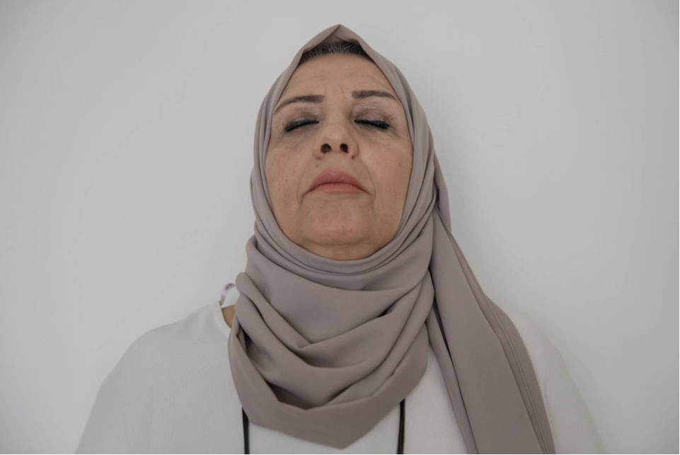 Iman, annusa i vestiti di Taher, suo figlio detenuto, nella sua casa nella città siriana di Idlib