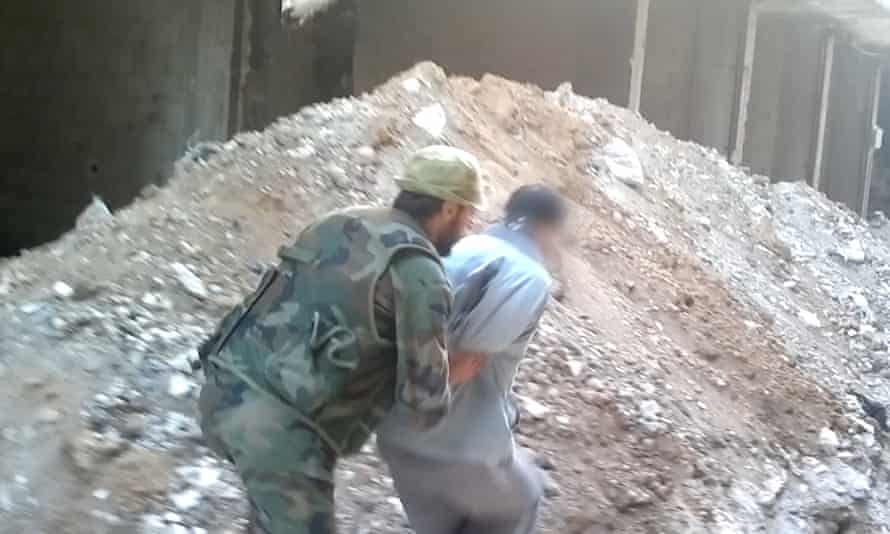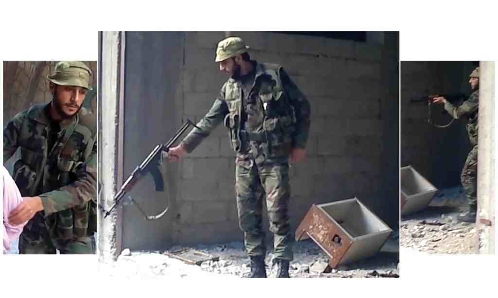 ( video di un ufficiale dei servizi segreti a Tadamon, Damasco, durante l’uccisione di almeno 41 persone). Fotografia e video di The Guardian